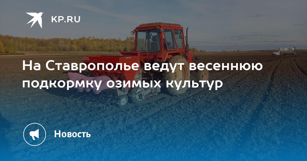 В Ставропольском крае аграрии ведут весеннюю подкормку озимых культур. Первые работы выполнили на площади около 1,3 млн гектаров. Это 95% от плана. Первую подкормку завершили уже в десяти муниципалитетах, в некоторых начали вторую.